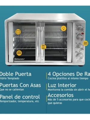 Horno Gourmet De Doble Puerta Con Asador Y Convección Elite Plateado
