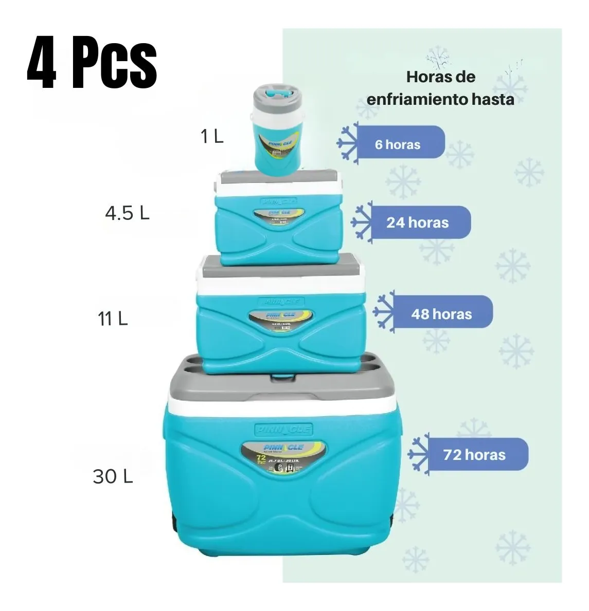 Hieleras 30lts C/ Ruedas, 11 Y 4.5lts Termo 1 Lt Pinnacle Turquesa
