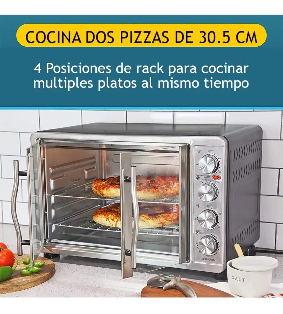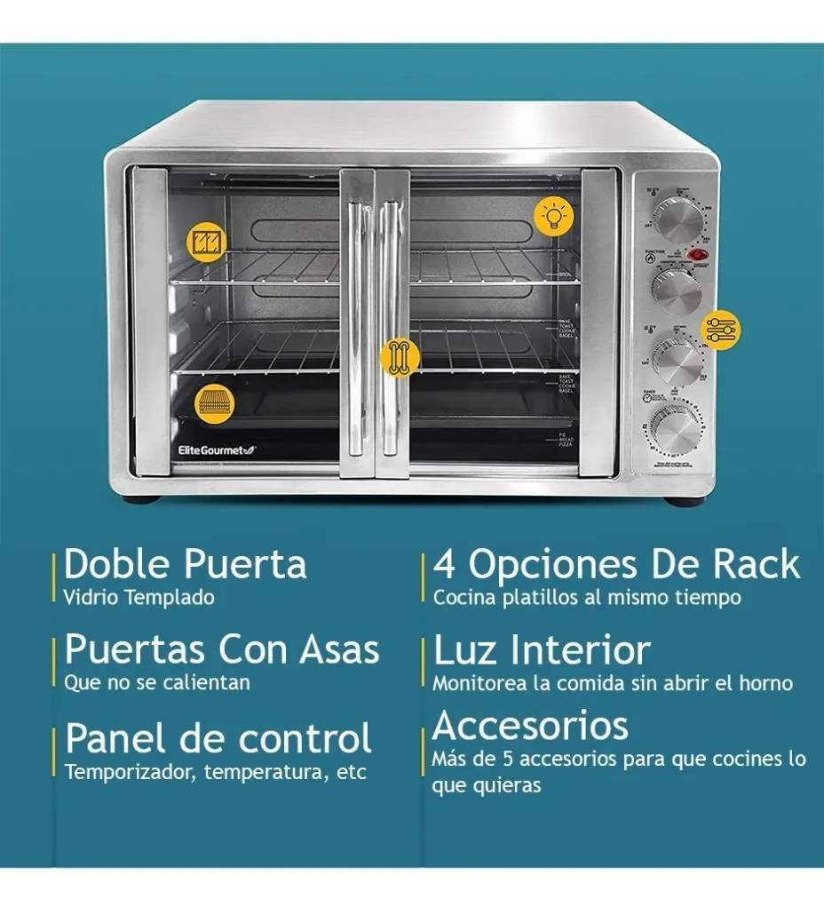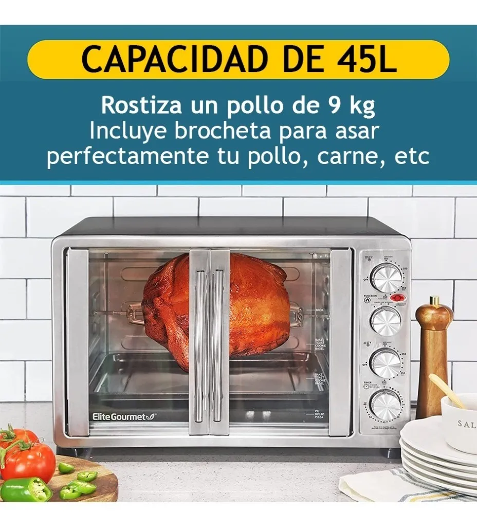 HomeElectrodomésticosHorno Gourmet De Doble Puerta Con Asador Y Convección Elite Plateado
