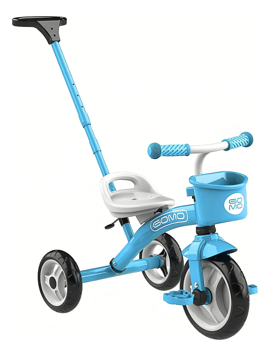 Crece con ellos: el asiento se coloca a 35.56 cm del suelo para que puedan empujar, y se desliza hacia adelante 3.81 cm para que sus pequeñas piernas puedan alcanzar los pedales desde el principio. Esta bicicleta para niños pequeños con mango de empuje permite a los padres guiar a los más pequeños mientras aprenden, y dicho mango se puede quitar fácilmente cuando estén listos para ir solos. Largo x Ancho x Altura 48.79 cm x 30.4 cm x 27.61 cm Lo que los padres también aman: los triciclos GOMO para ciclistas pequeños cuentan con una práctica cesta que permite a los niños llevar sus propios juguetes, liberando a los padres de esa tarea. Además, el manillar de empuje está diseñado con un sistema de rueda libre para evitar que los pies de los niños se enreden mientras son empujados. Otro aspecto clave son las ruedas de poliuretano a prueba de pinchazos, que son duraderas y no dañan los suelos interiores. Ayuda a los niños a aprender una velocidad segura: algunas bicicletas para niños pequeños tienen asientos y manillares resbaladizos, lo que disminuye la tracción y dificulta el control de la velocidad. Sin embargo, nuestro exclusivo manillar con agarres GOMO seguros para niños y un asiento antideslizante permiten a los pequeños disfrutar del paseo sin caerse ni resbalarse. El triciclo GOMO permite a los niños superar sus límites de confianza, de forma segura.
